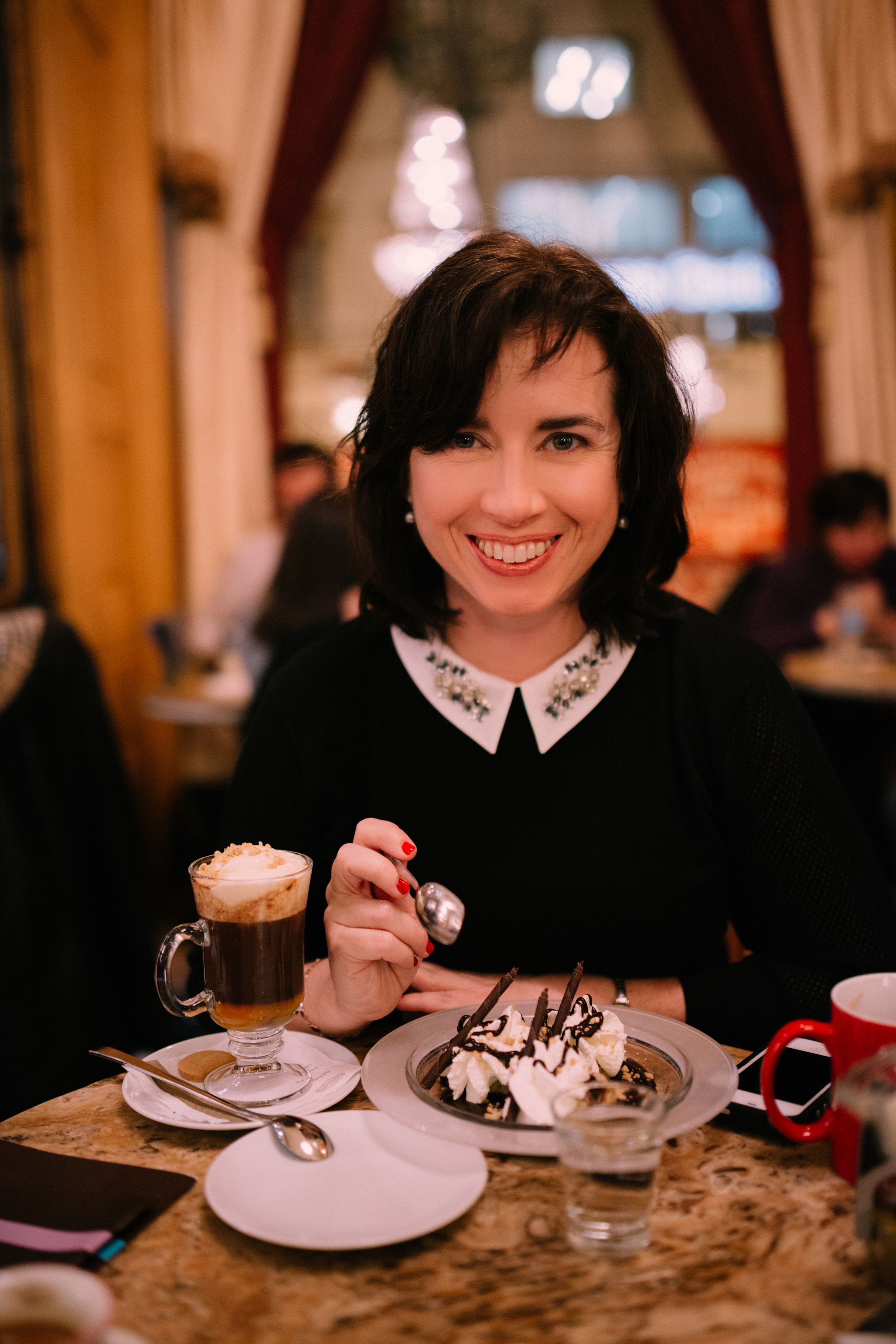 141219_kiera_0075 Published December 2, 2016 at 2202 × 3300 in 141219_kiera_0075 Enjoying somloi galuska at Gerbeaud Cafe in Budapest Photo credit: Roky, Flytographer Somloi Galuska at Gerbeaud Cafe in Budapest, Hungary photo by Roky of Flytographer